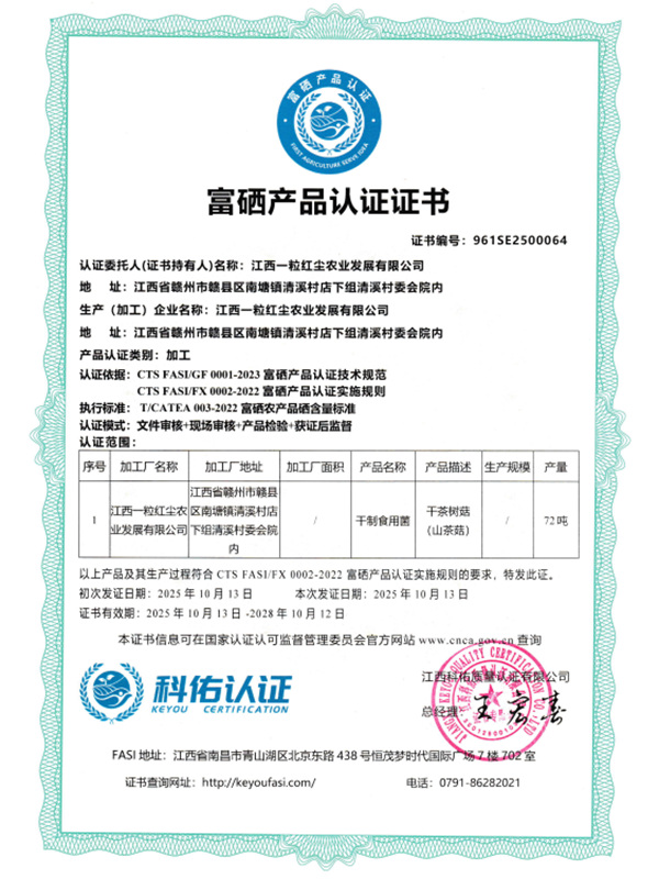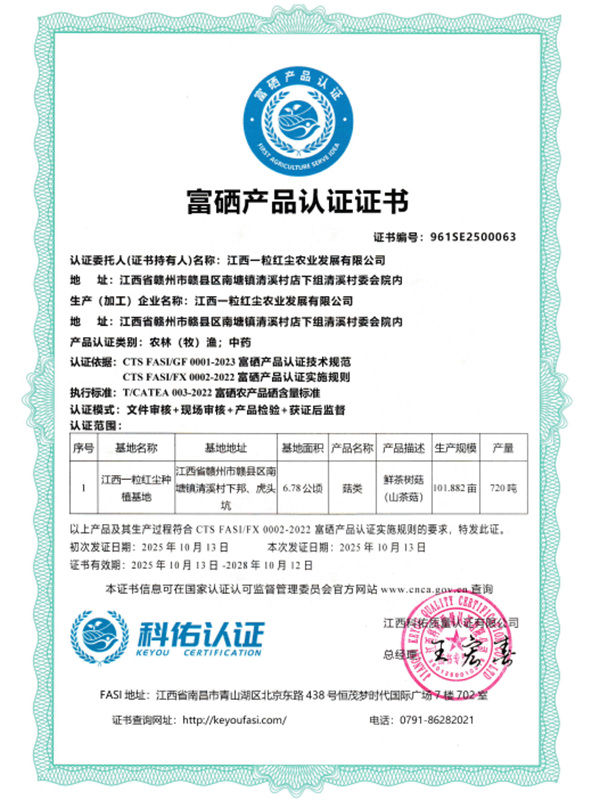 江西一粒紅塵農業發展有限公司是一家總部位于江西省贛縣的現代農業多元型企業,專注于食用菌的研發種植、深加工、貿易研教培、農文旅等全產業鏈發展。公司秉承“健康、綠色、共享共贏”的核心價值觀,致力于引領鄉村振興之路,旨在成為......